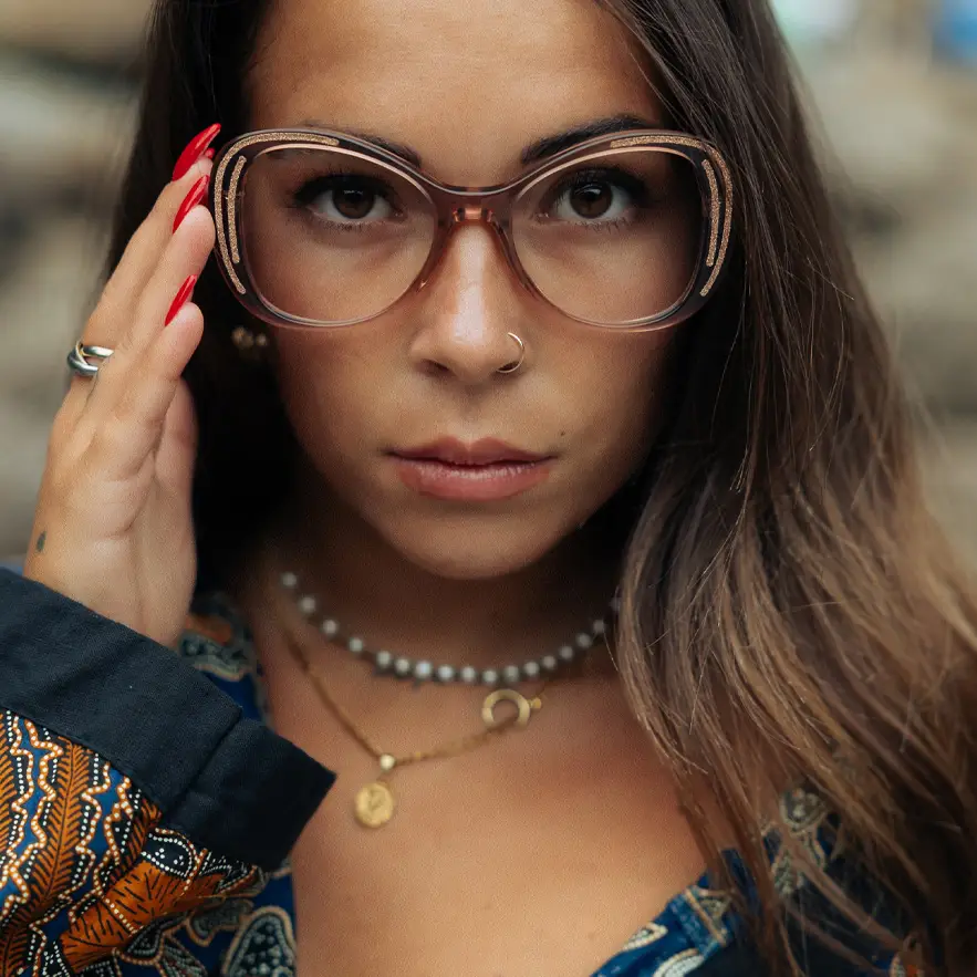 Ogni montatura è progettata come una struttura: forme, spessori e colori dialogano con il volto per garantire equilibrio, comfort e identità.
